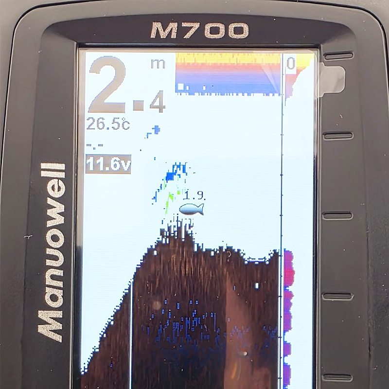 – Echolotas rodo dugno reljefą iš kurio galime spręsti ar dugnas kietas, kiek žolių. Rodo gylį. Vandens temperatūrą. Galima įjungti automatinį žuvų ženklo rodymą.